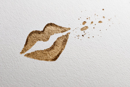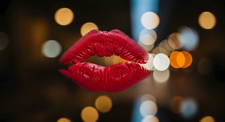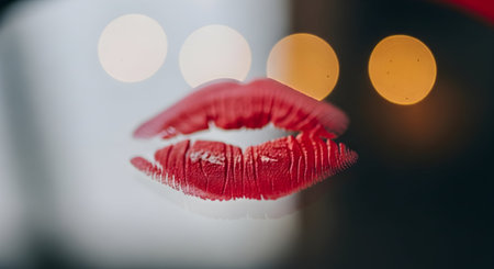 Blurry background of a card with the imprint of a female kiss