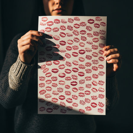 Multiple lipstick kisses on paper