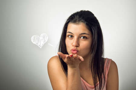 Beautiful brunette teenager blowing a kiss