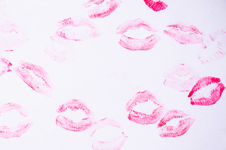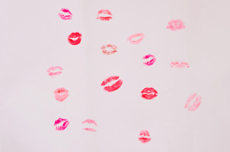 Lipstick kiss marks on white background
