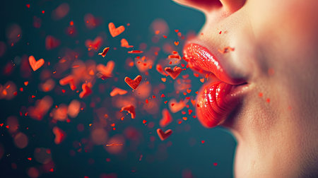 Lovely lips. Lip with hearts. Love concept. Beauty Makeup.