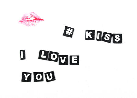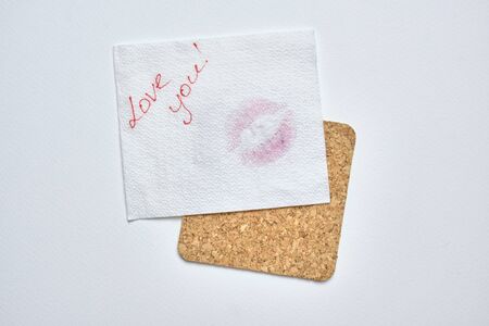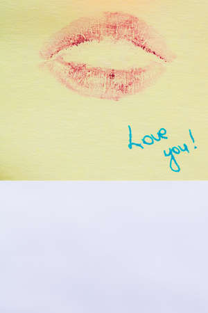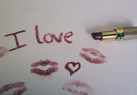 I love you inscription, lipstick is red, a trace of a kiss, a trace of lipstick
