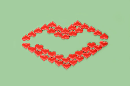 Beautiful lips made of hearts for Valentines Day. Strong relationships and declaration of love. Traditional holiday.
