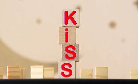 Isolated colored wood blocks, with the word kiss painted.