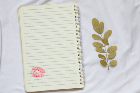 Notebook marked with lipstick kisses