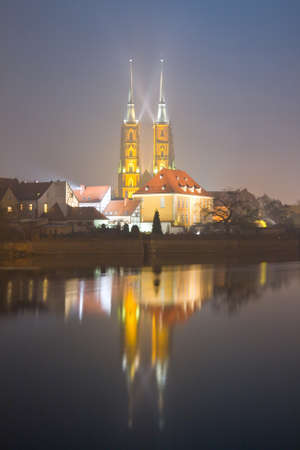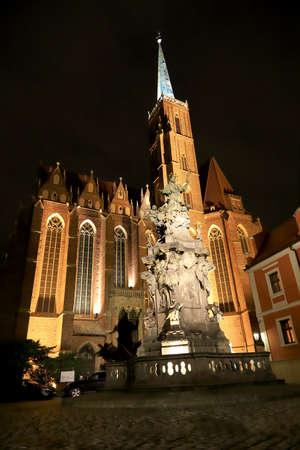 View on The Cathedral of St. John the Baptist in Wrocaw at night. Poland