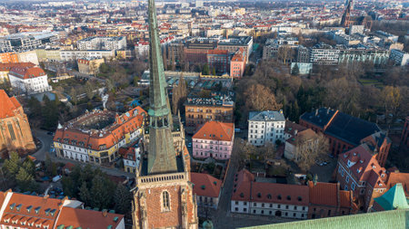 Aerial View of Wroclaw, Poland Featuring Gothic Style Church