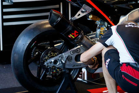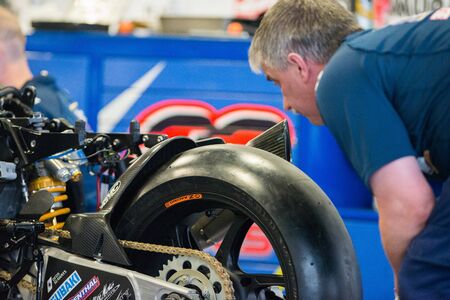 MISANO ADRIATICO, ITALY - JUNE 21, 2015: mechanic working during the FIM Superbike World Championship - Race at Misano World Circuit on June 21, 2015 in Misano Adriatico, Italy.