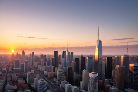 The skyscrapers and building in new york city with the beautiful sky in the morning. Generative AI AIG21.