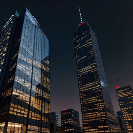 downtown financial district and city skyline, city, glass tall buildings, Generative Ai