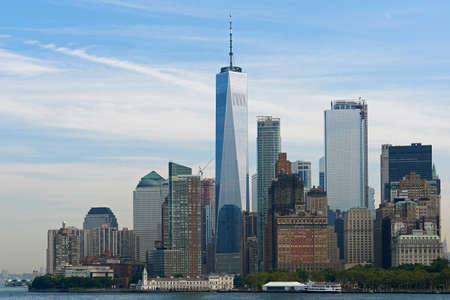 New York City, USA - Manhattan skyline with One World tower tallest in America.