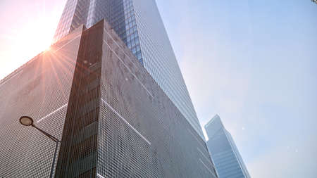 New York, USA - April 24, 2015: Bottom up view on glass skyscraper in New York, the USA