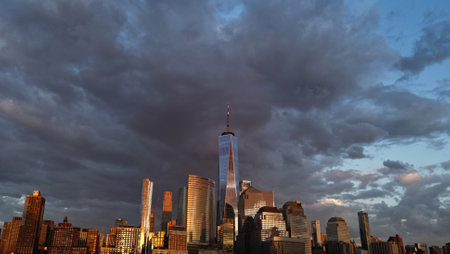 Cloud in NYC, New York City Skyline with dramatic sky. American Urban Skyscrapers USA near dramatic clouds. New York City skyline, cityscape of Manhattan in New York. Panoramic view on Manhattan. USA.