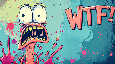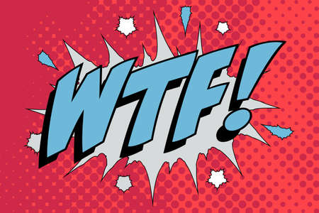 This vibrant graphic features the bold letters WTF in a dynamic comic book style, set against a striking radial background of red and turquoise. The explosive design, complete with stars and a speech bubble effect, captures a sense of surprise and excitement, perfect for conveying strong emotions in a fun and engaging way.