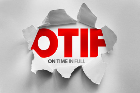 Acronym OTIF boldly revealed through torn paper, symbolizing On Time In Full - a critical KPI in logistics, shipping, and supply chain efficiency for timely and complete deliveries