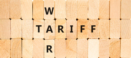 Trade tariff war symbol. Concept word Tariff war on beautiful wooden block wall. Beautiful wooden block wall background. Wooden blocks. Business trade tariff wars concept. Copy space.