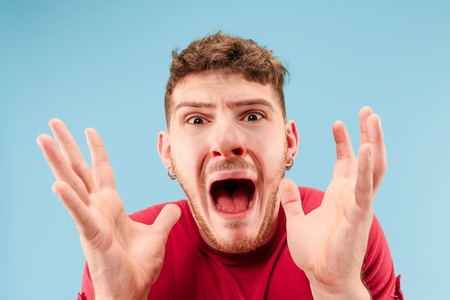 Roar of anger. Businessman scream in anger. Angry manager side-face isolated on white