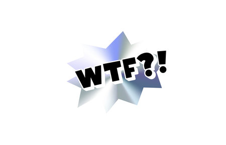 WTF playful 3D text design. Jaw-dropping reaction. Confusion disbelief. Weird content. Internet shock. Multicolor block letters. Retro funky style with stars. Pop culture. Montserrat font used