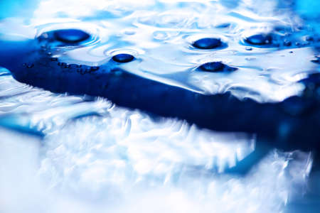 Abstract texture art blue water background with air bubbles close-up macro photography