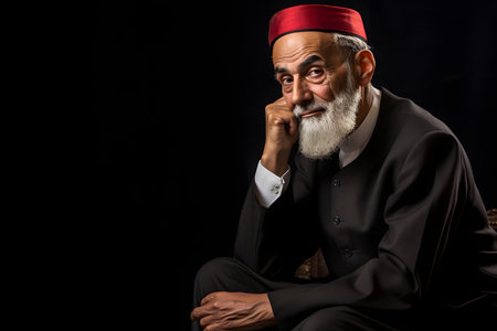 Portrait of an old man in a red cap on a black background