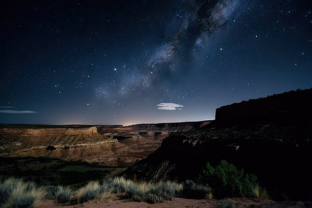 night sky, with stars and moon shining over canyon, created with generative ai