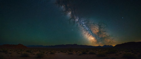 AI Generated. Stunning desert landscape under a night sky with the Milky Way galaxy in full view, showcasing the beauty of the natural world