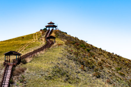 Hiking trail on the top of the mountain in the morning.