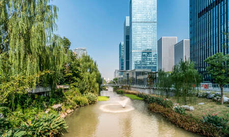 Aerial photography of modern architectural landscape of Jinji Lake in Suzhou