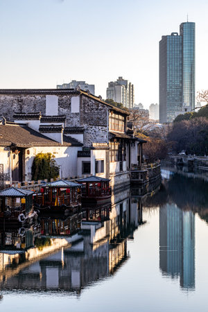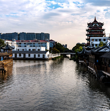 Old-town district, classic vintage architecture. Photo in Suzhou, China.
