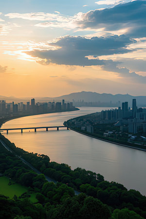 Cityscape of Hangzhou at sunset, China. Hangzhou is the capital of China.