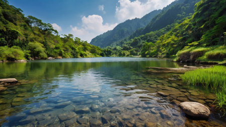 Beautiful view of mountain river in summer.