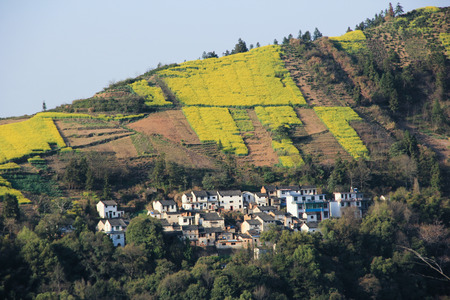 Rape blossoms and buildings in Wuyuan, Jiangxi, China