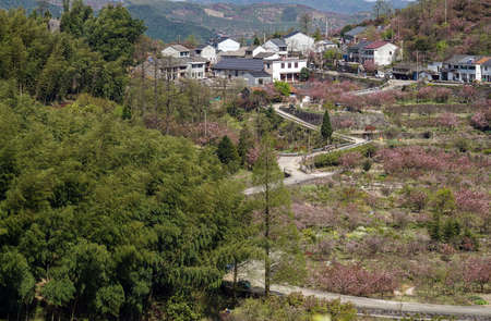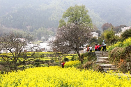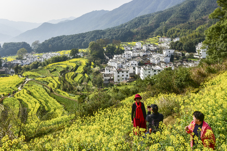 Spring of Wuyuan Ridge in China - March 22, 2018, mountain village with flowers blooming