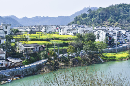 Rape blossoms and village in Wuyuan, Jiangxi, China