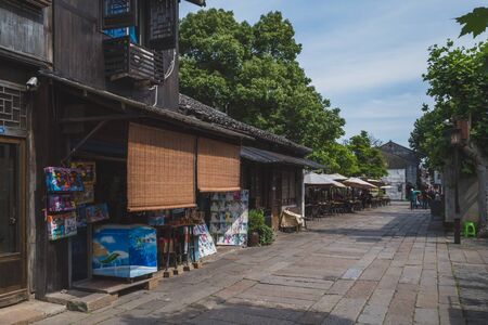 Nanxun, Zhejiang, China - 24 May 2019: Shops along main road in Nanxun Old Town