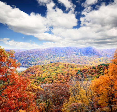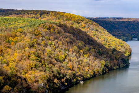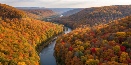 A beautiful view of an autumn landscape with a river in Pittsburgh forest
