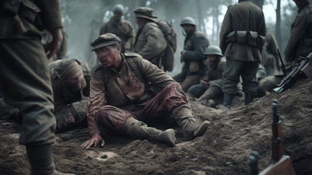 War, a moment frozen in the frame, the soul is touched by fear and grief, a that embodies the horror and sadness of the great war, a glimpse of history, wrapped in emotion, captures heart and mind.