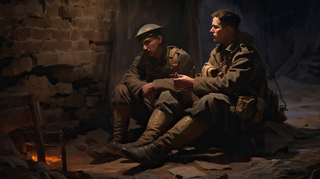 Historical depiction of soldiers in trenches during the World War I era