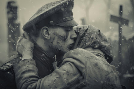 Enduring love: tender moments and unwavering devotion in the embrace of a soldier's heart.