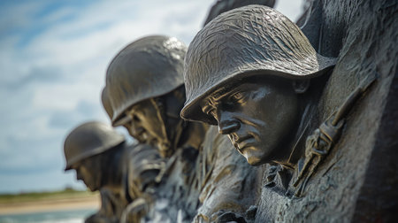 Soldiers of the World War II on the background of the sky