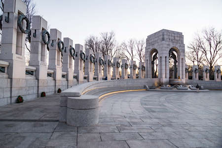 World War 2 Memorial at sunset during winter time in Washington DC