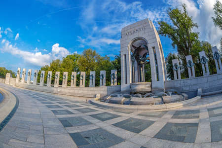 The Atlantic Arch at World War II Memorial on National Mall in Washington DC, USA.