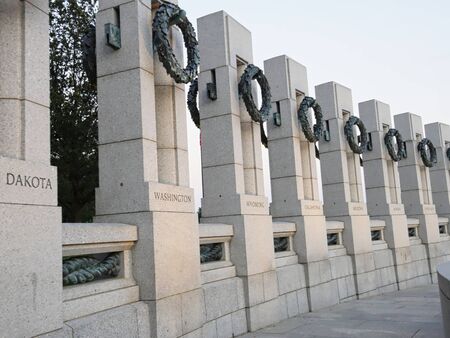Washington, D.C. USA- September 2017: Rows of monuments for the different states at the World War 11 Memorial to honor the 16 million people who served as part of the U.S. Armed Forces during World War 11.