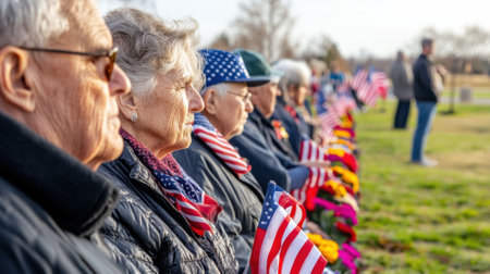 A group of elderly veterans gathered at a memorial honoring their service and sacrifice