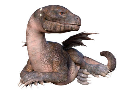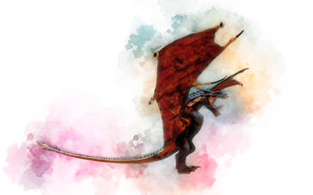 Fantasy dragon in the style of watercolor painting isolated on white 3d illustration