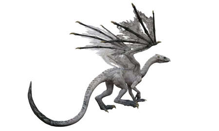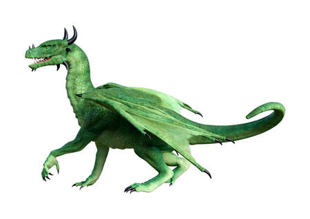 Wyvern or Dragon fantasy creature walking in menacing pose. 3D illustration isolated on white.