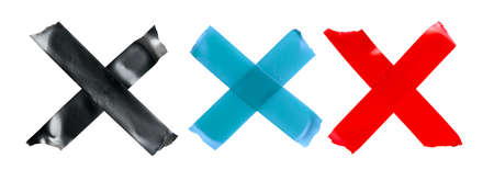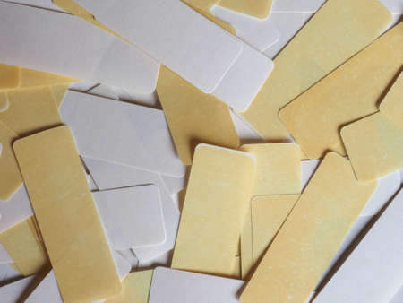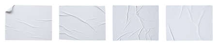 Variety of white paper stuck with sticky tape isolated on a white background.