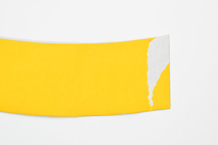 Scotch. Adhesive tape or piece of yellow and black sticky paper isolated on white. Torn background with strip grunge duct texture.