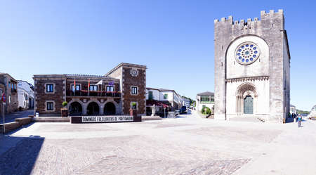 Stone arch and bell towers San Benito church in the old quarter of the village of Cambados, Spain