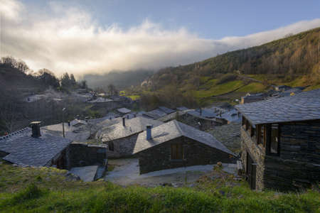 Slate roofs and stone walls in a restored village in the mountains of O Courel, Galicia